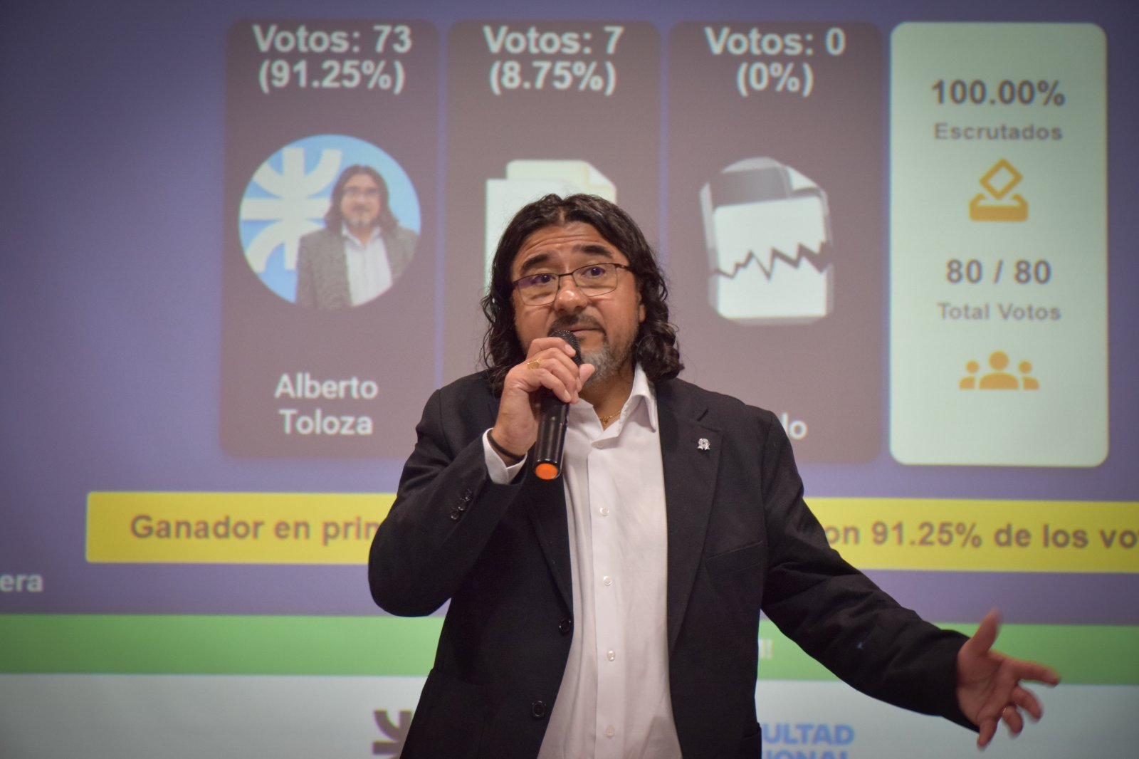 La votación se realizó de manera nominal con la participación de 80 electores. El resultado fue de 73 votos para Toloza y 7 votos en blanco, por lo que fue proclamado Decano para el período 2025-2029, con un 91,25% de apoyo.