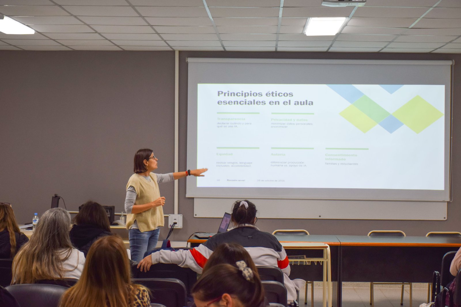 La ingeniera destacó además que durante el taller se hizo hincapié en que “sigue siendo necesaria la presencia del ser humano, y es fundamental el rol de las personas para humanizar a la IA. Y en este proceso hay mucho interés en capacitarse pero también mucha intriga, muchas preguntas. Vinieron a buscar respuestas a cuestiones técnicas, a comprender el funcionamiento de la IA, pero además mostraron muchas ganas de seguir aprendiendo y mejorar la educación que se brinda en las aulas, lo que es muy alentador”.